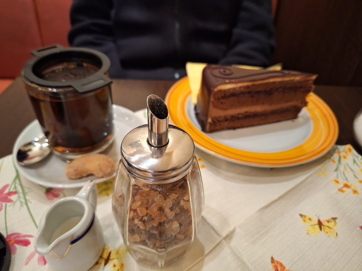 Ein Café wie aus der guten alten Zeit. Die Sachertorte ist hervorragend, kann nicht jeder. Auch der gedeckte Kirschstreusel ist nich zu süß, klebt nicht und hat einen trockenen Boden. Der Cafe wird hier noch im Kaninchen serviert. Einfach ungemütlich. Super